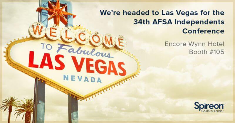 Join Spireon at the AFSA’s 34th Independents Conference and Expo. We’ll show you how GoldStar Lender is a powerful and customized telematics solution that will help you create faster, smarter and more profitable loan decisions. Visit us at booth #105 to learn more and for your chance to win a DJI 3 Phantom Camera Drone!